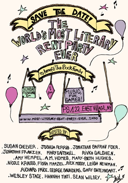 Remember our post about The World’s Most Literary Rent Party Ever (aka the Bock Family Benefit)? Well, it’s going to be an awesome party. It sold out in just days thanks to all who have read about this here at Will You Miss Me When I’m Gone? and all the places that have pitched in to get the word out!